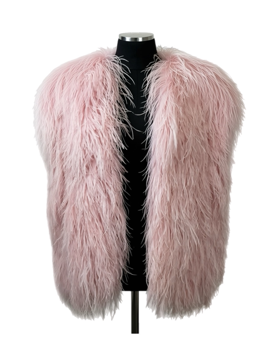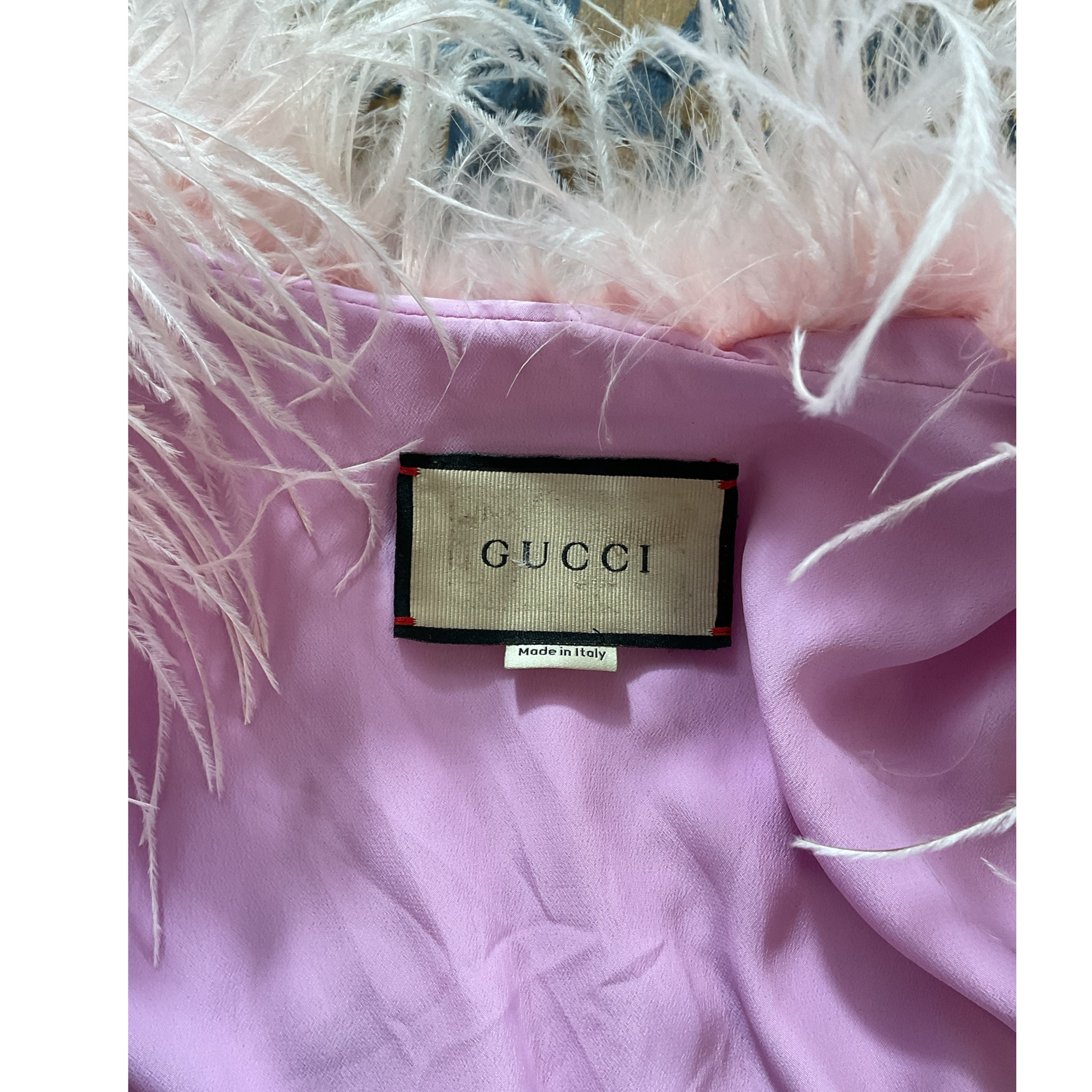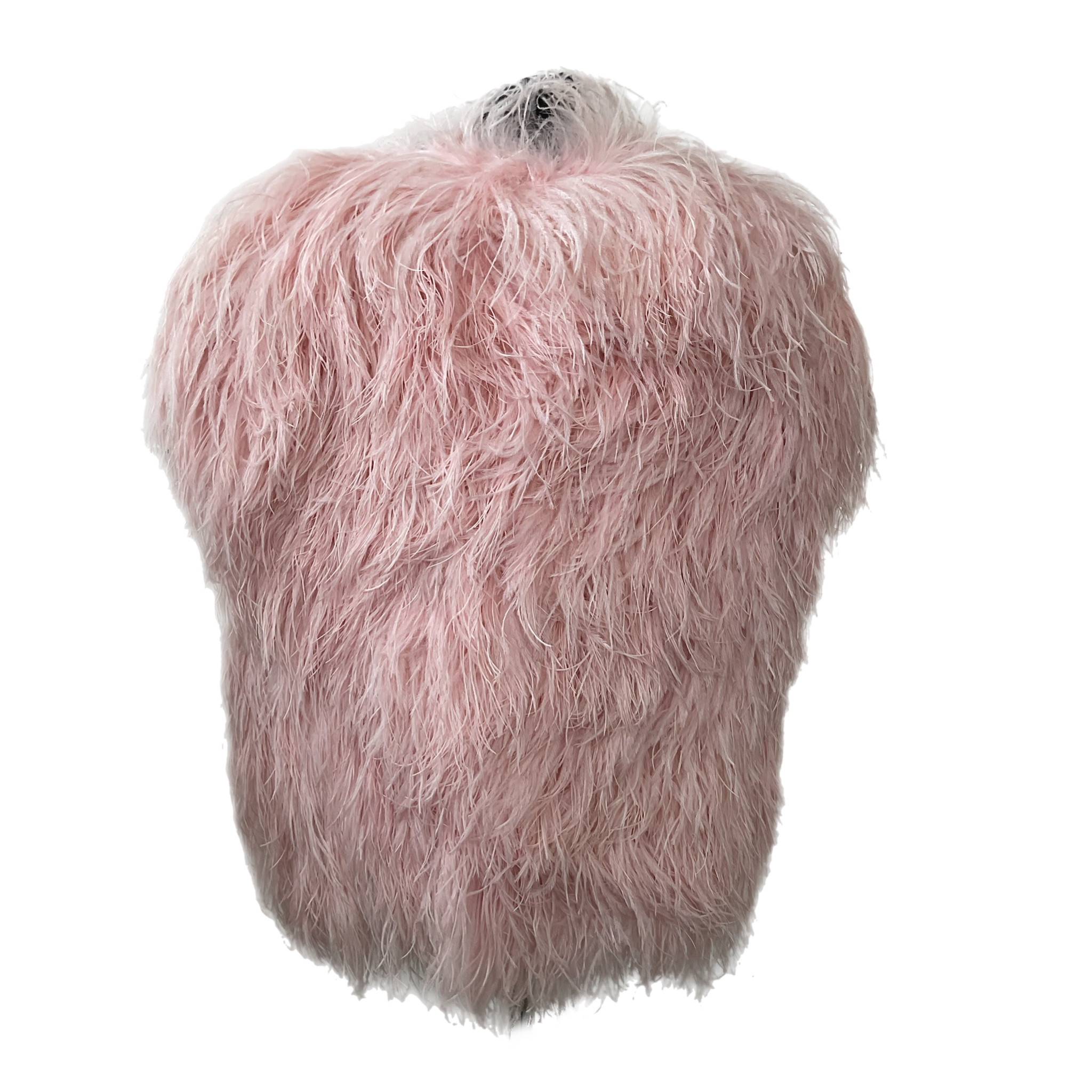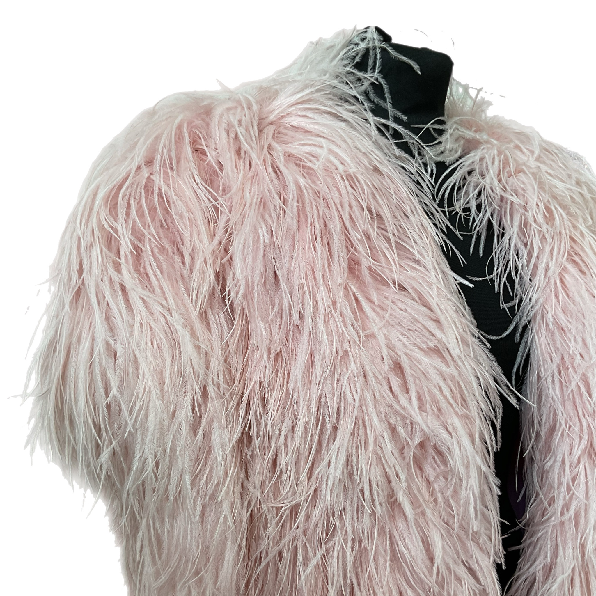 Capo unico nel suo genere in piume di marabù rosa con fodera color lilla in seta.