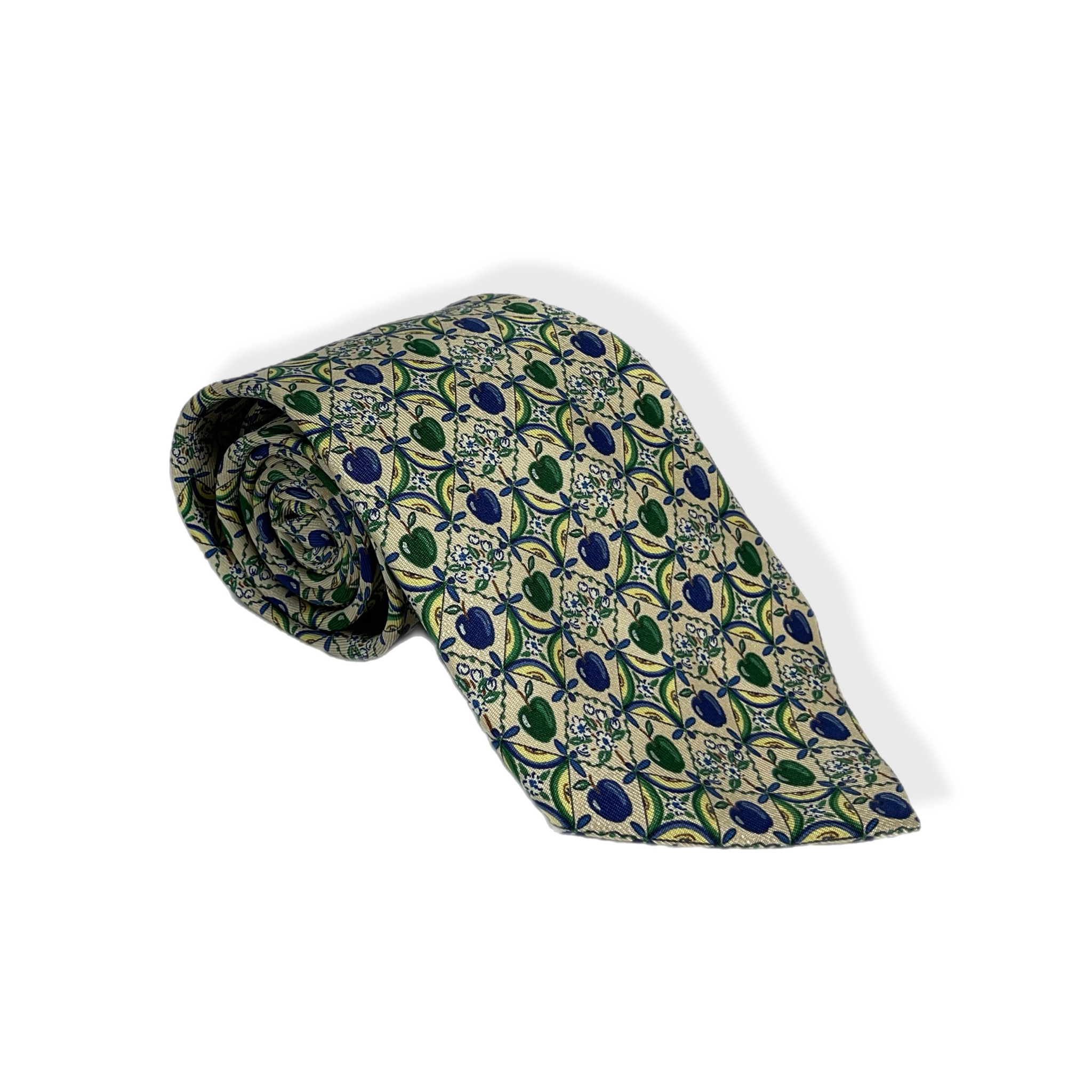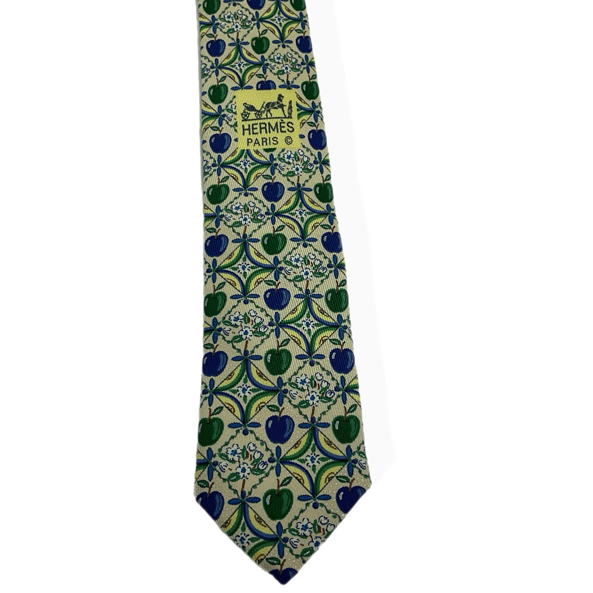 Cravatta Hermès anni 2000 in 100% seta realizzata con cura artigianale e attenzione al dettaglio. Il tessuto lucido e fluido dona un tocco di classe e raffinatezza a ogni look, rendendola l’accessorio ideale per l’uomo che ama distinguersi con eleganza. Perfetta da abbinare a camicie classiche e completi sartoriali, è pensata per occasioni formali ma si presta anche a contesti più smart grazie alla sua versatilità, si adatta facilmente a diversi tipi di nodo, mantenendo sempre una resa impeccabile. La base è beige ma con fantasia colorata blu e verde, Made in France.