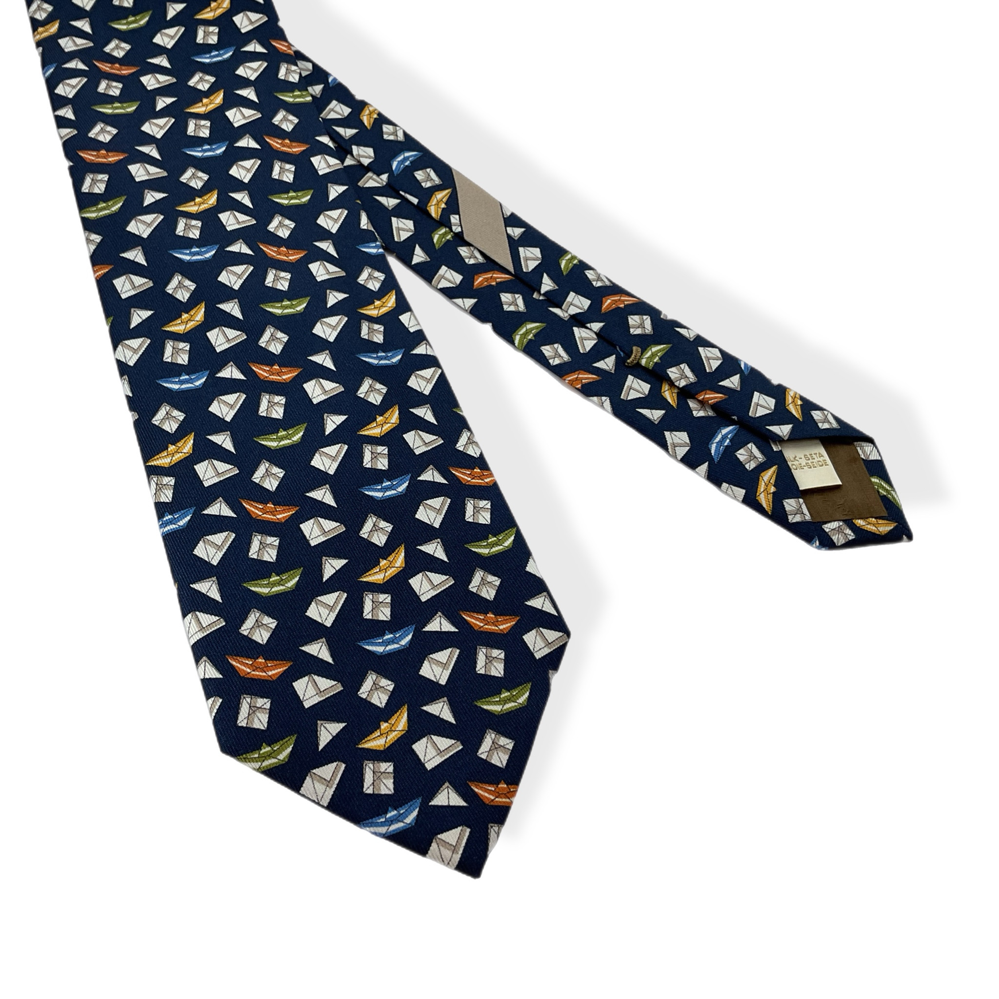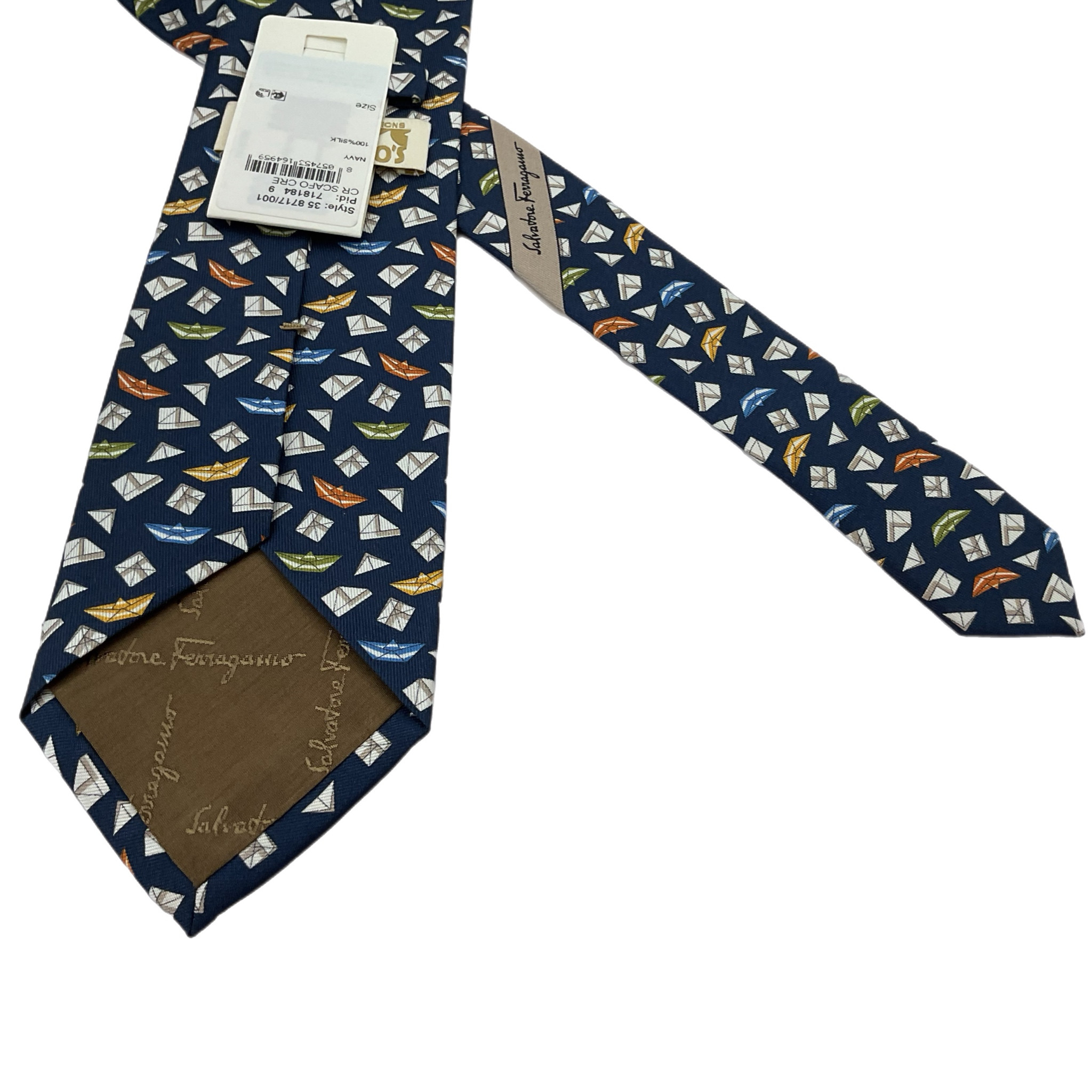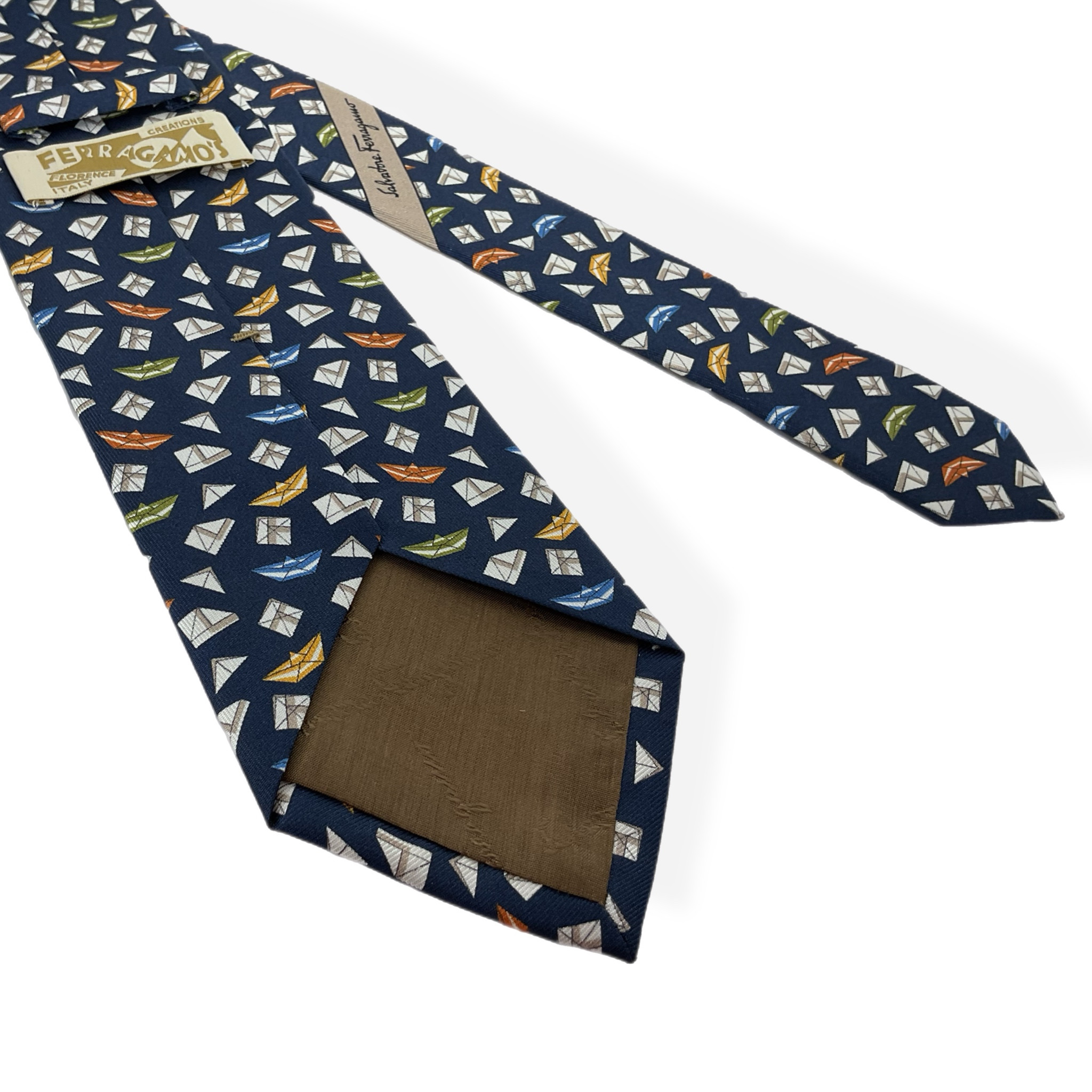 Cravatta Ferragamo anni 2000 in 100% seta realizzata con cura artigianale e attenzione al dettaglio. Il tessuto lucido e fluido dona un tocco di classe e raffinatezza a ogni look, rendendola l’accessorio ideale per l’uomo che ama distinguersi con eleganza. Perfetta da abbinare a camicie classiche e completi sartoriali, è pensata per occasioni formali ma si presta anche a contesti più smart grazie alla sua versatilità.Nuova, le sue condizioni, quindi sono ottime, la base è blu con dettagli bianchi, verdi, gialli e azzurri.