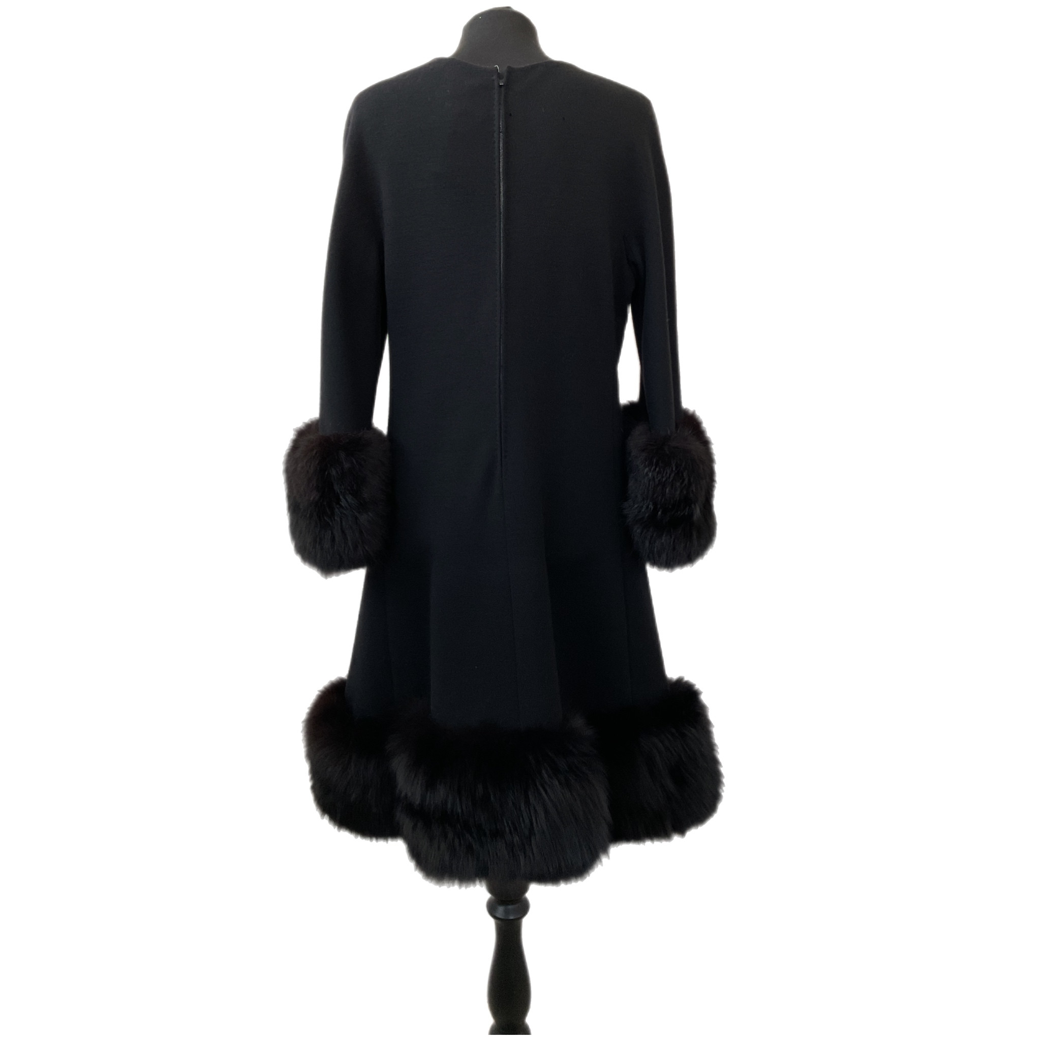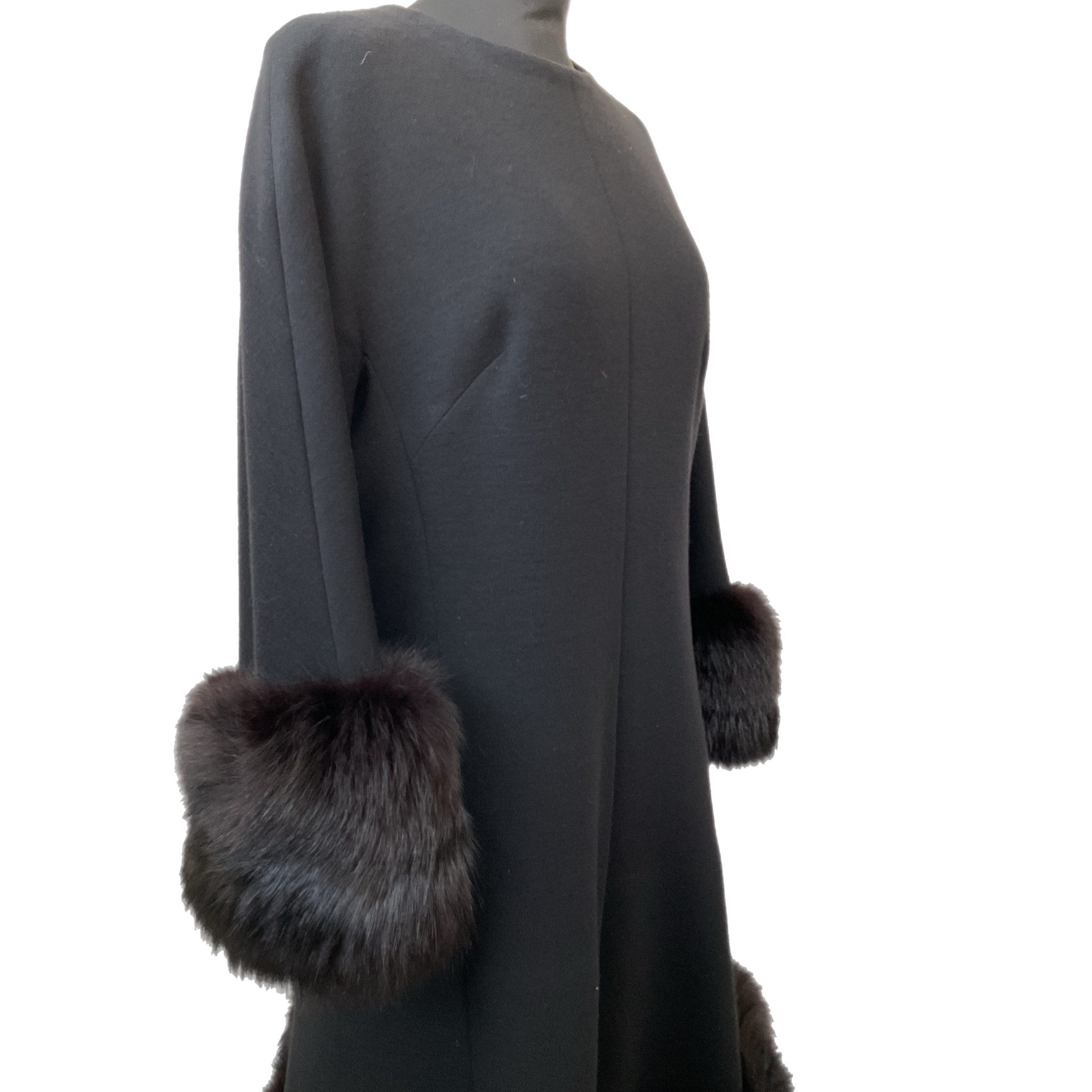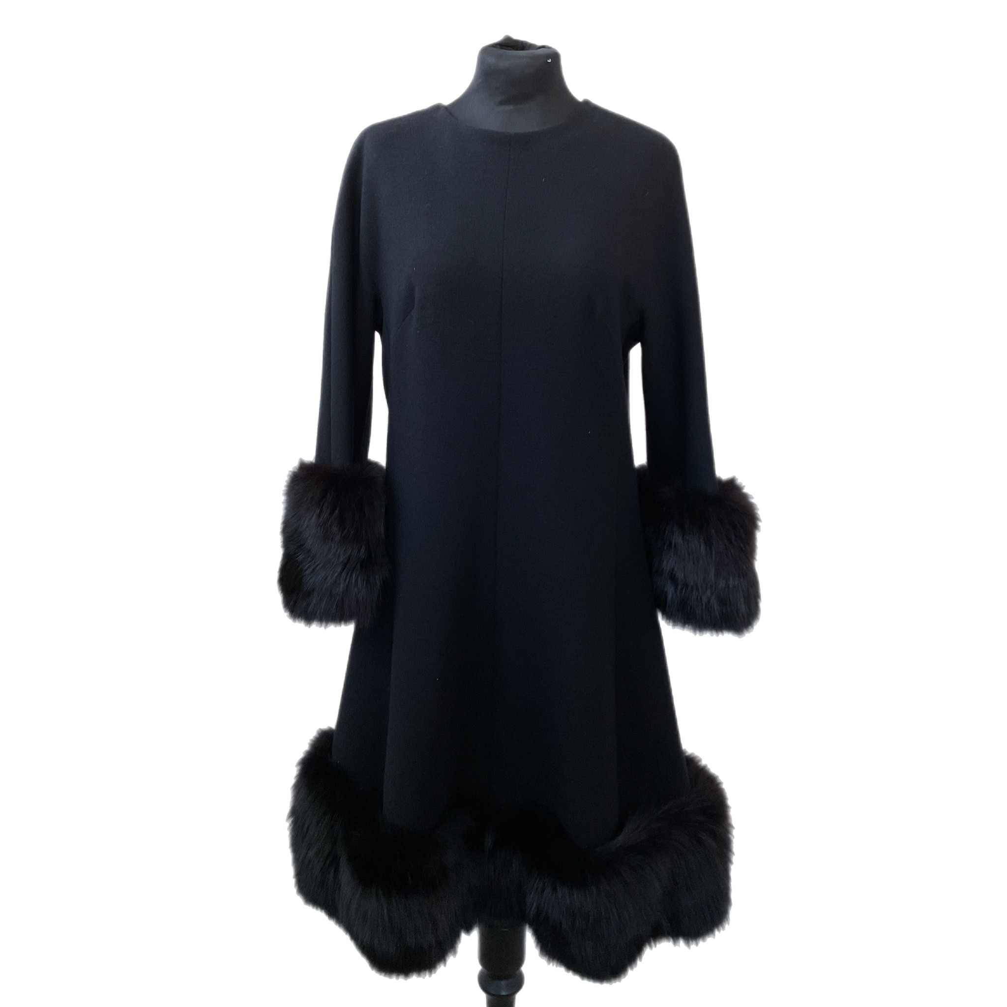 Abito in lana con bordi e polsini in pelliccia sartoriale degli anni '60, proviene dall,antica sartoria confezioni " Raschi"di Firenze.