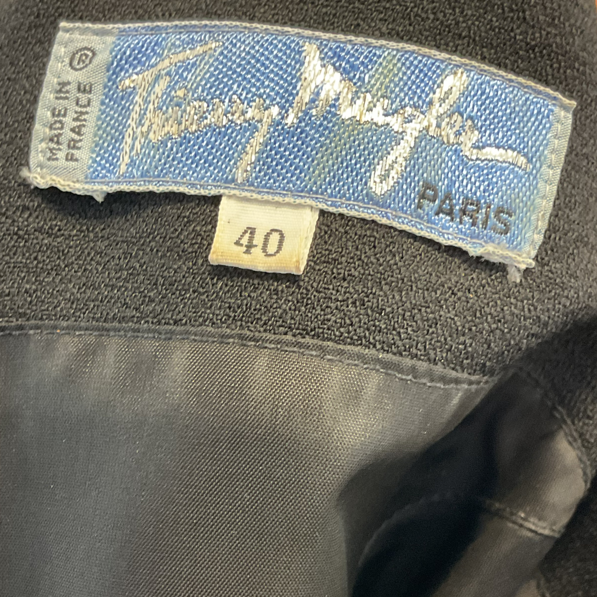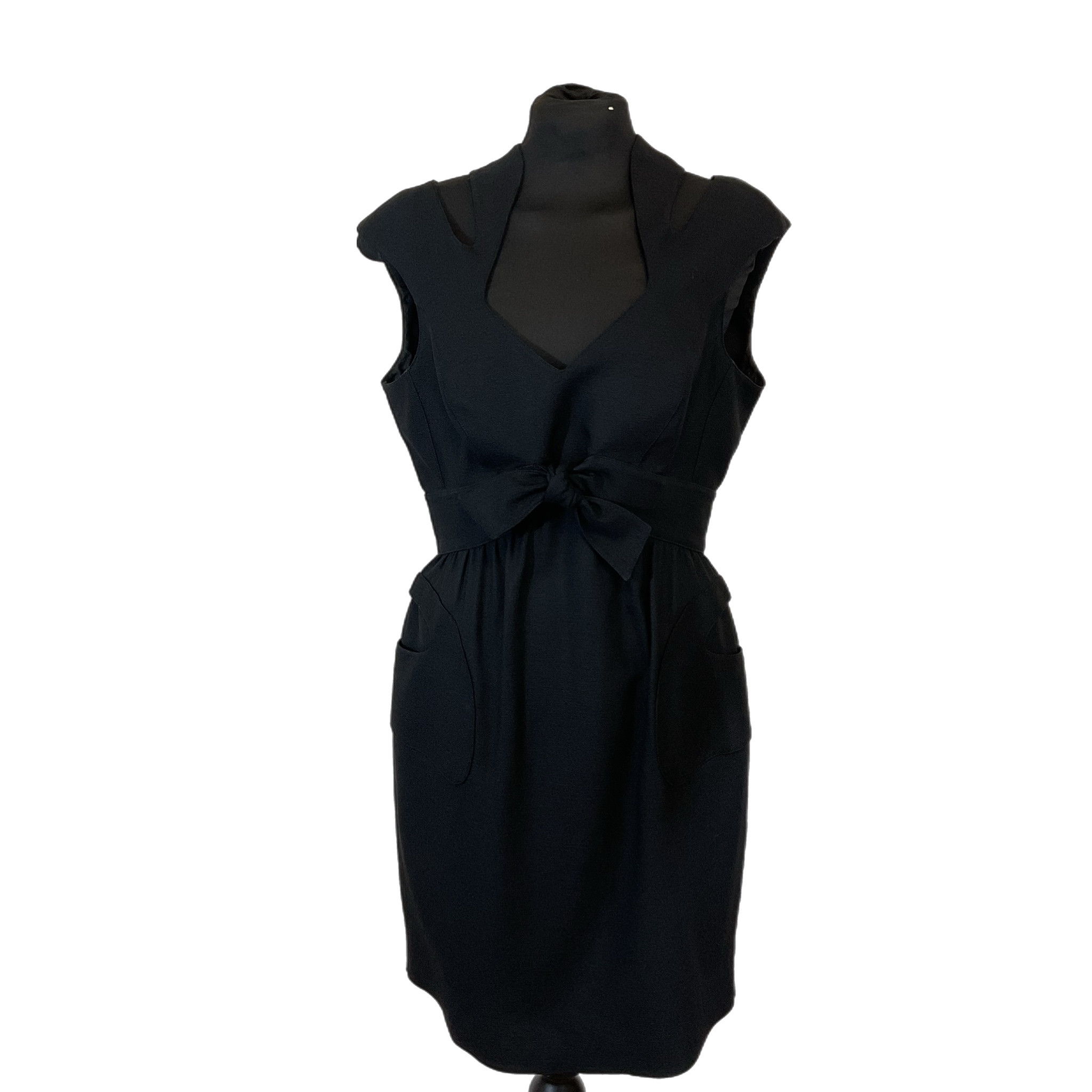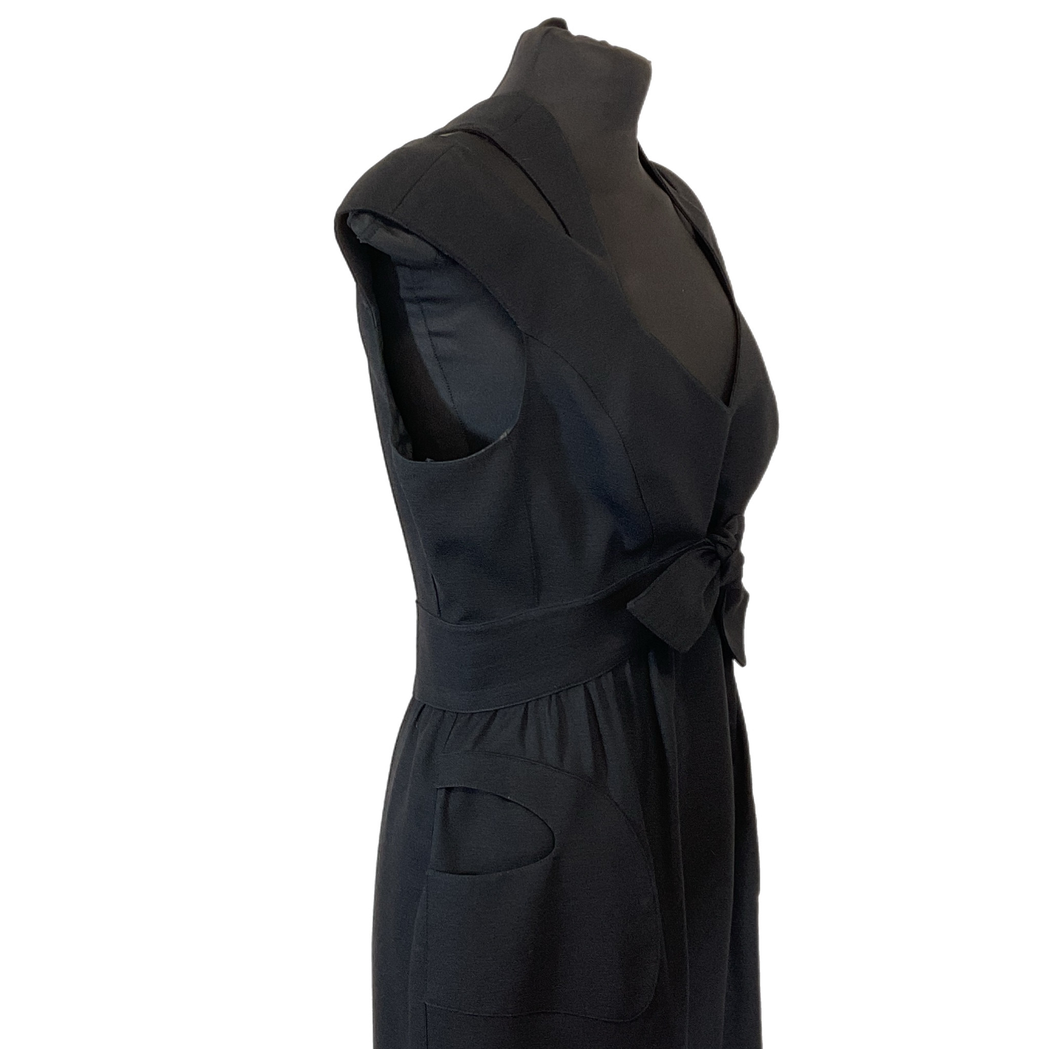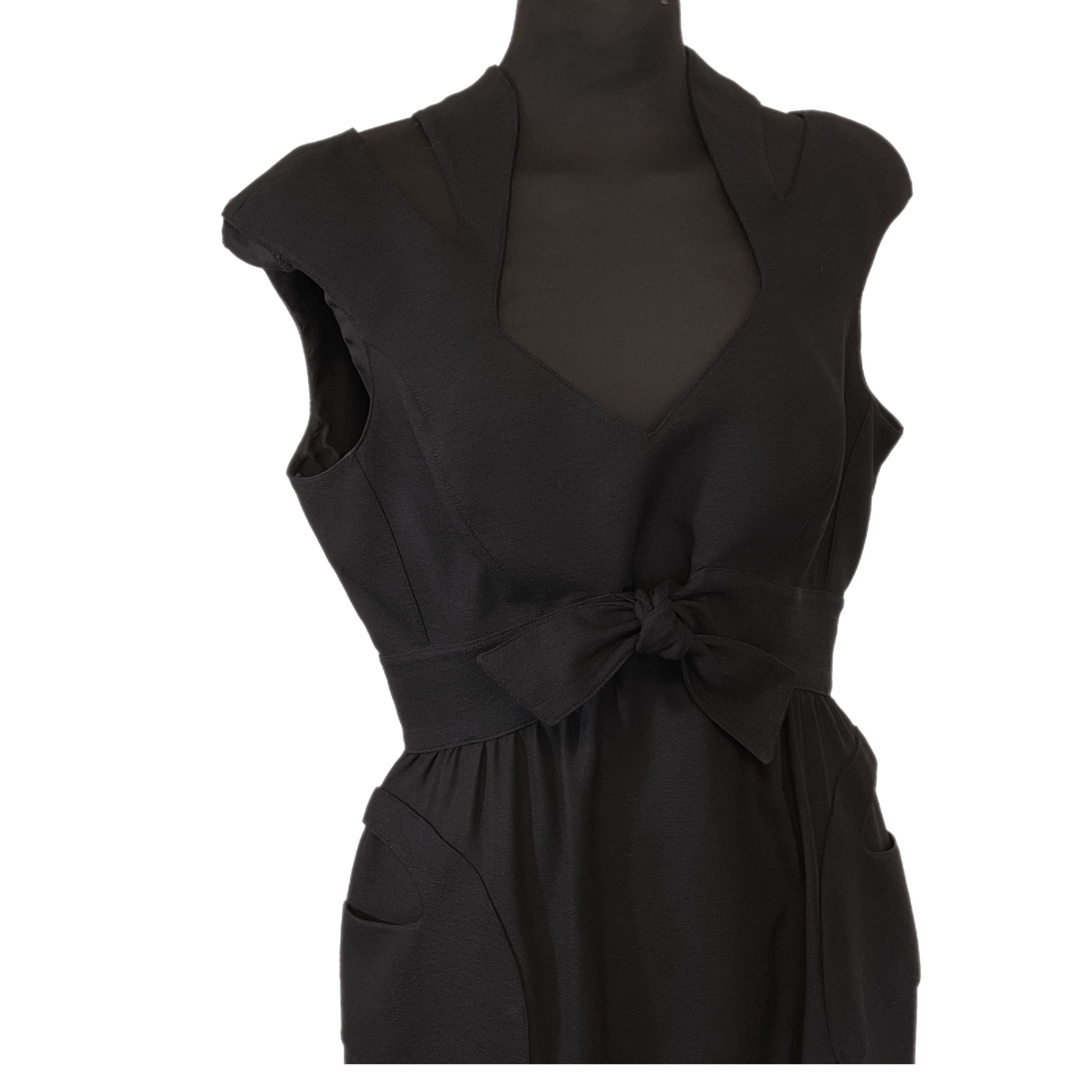 Abito nero Thierry Mugler tg 40 in Ryan, classico design elegante anni '90 a tubino con un fiocco intrecciato nella parte anteriore sotto lo scollo.