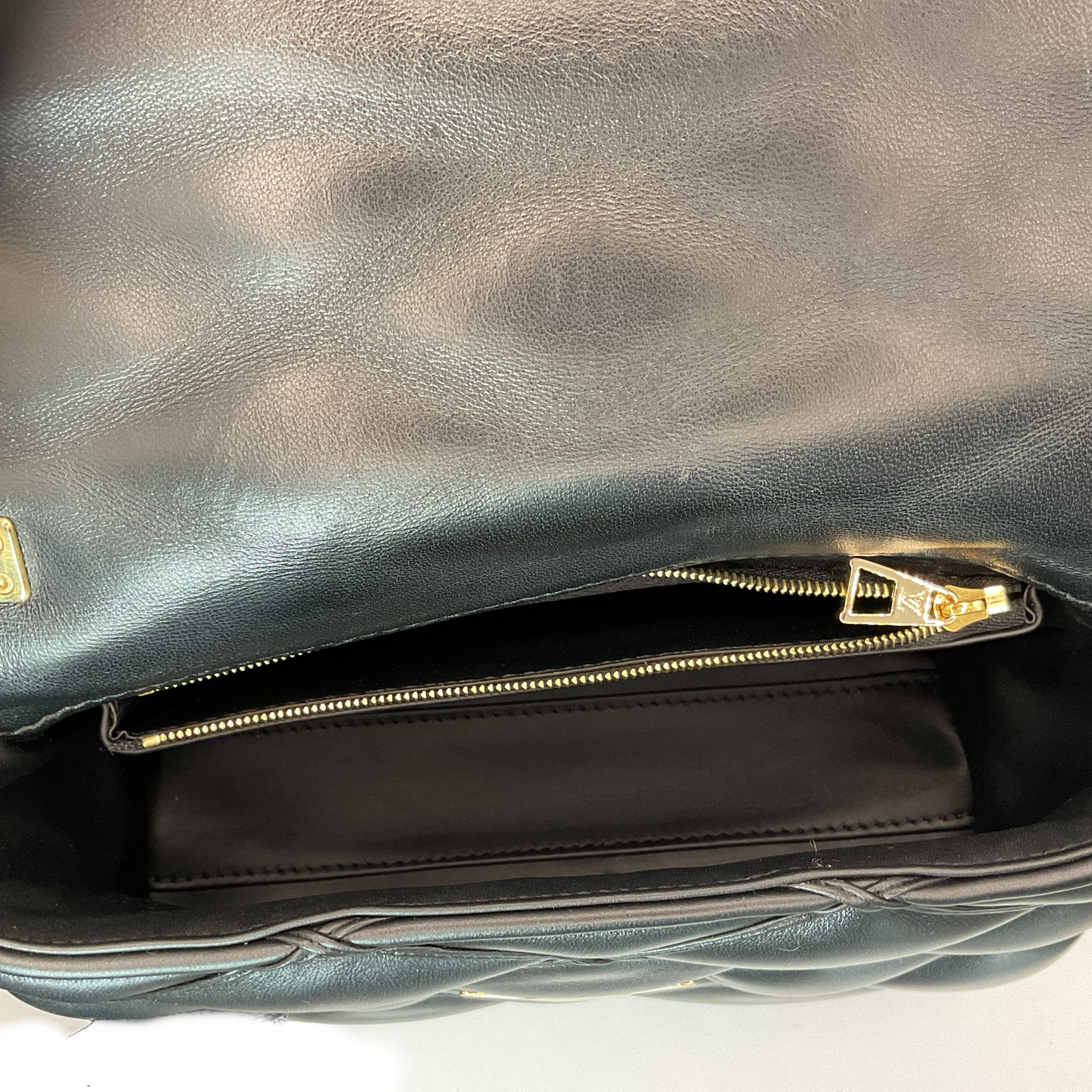La borsa GO-14 MM, in pelle di agnello, si distingue per il caratteristico motivo trapuntato, ispirato alla fodera degli storici bauli della Maison. Il versatile modello, rifinito dalla brillante chiusura LV twist-lock, può essere portato in modi diversi grazie alla catenella scorrevole. Il manico superiore, inoltre, si converte in passaspalla per rendere ancora più confortevole il trasporto.