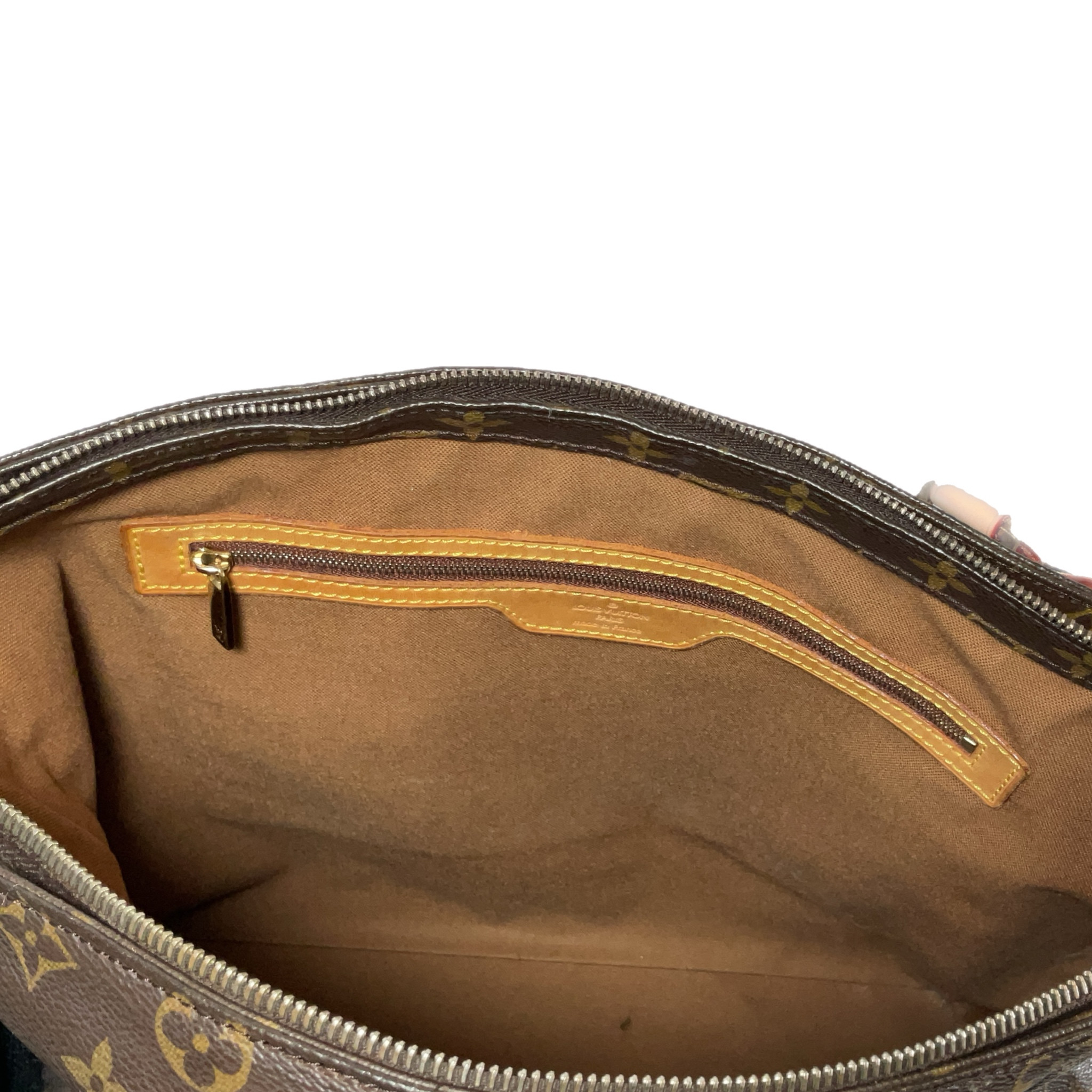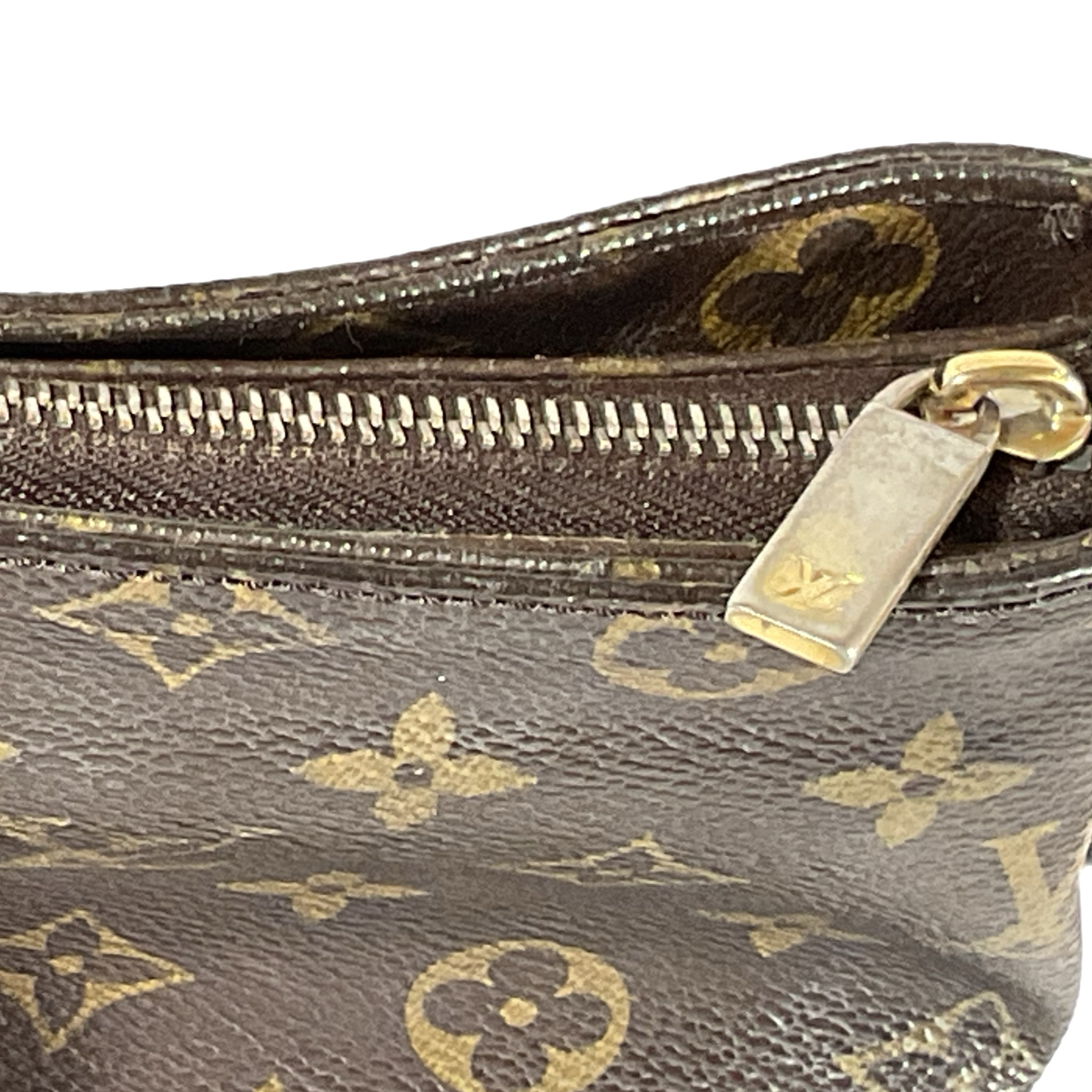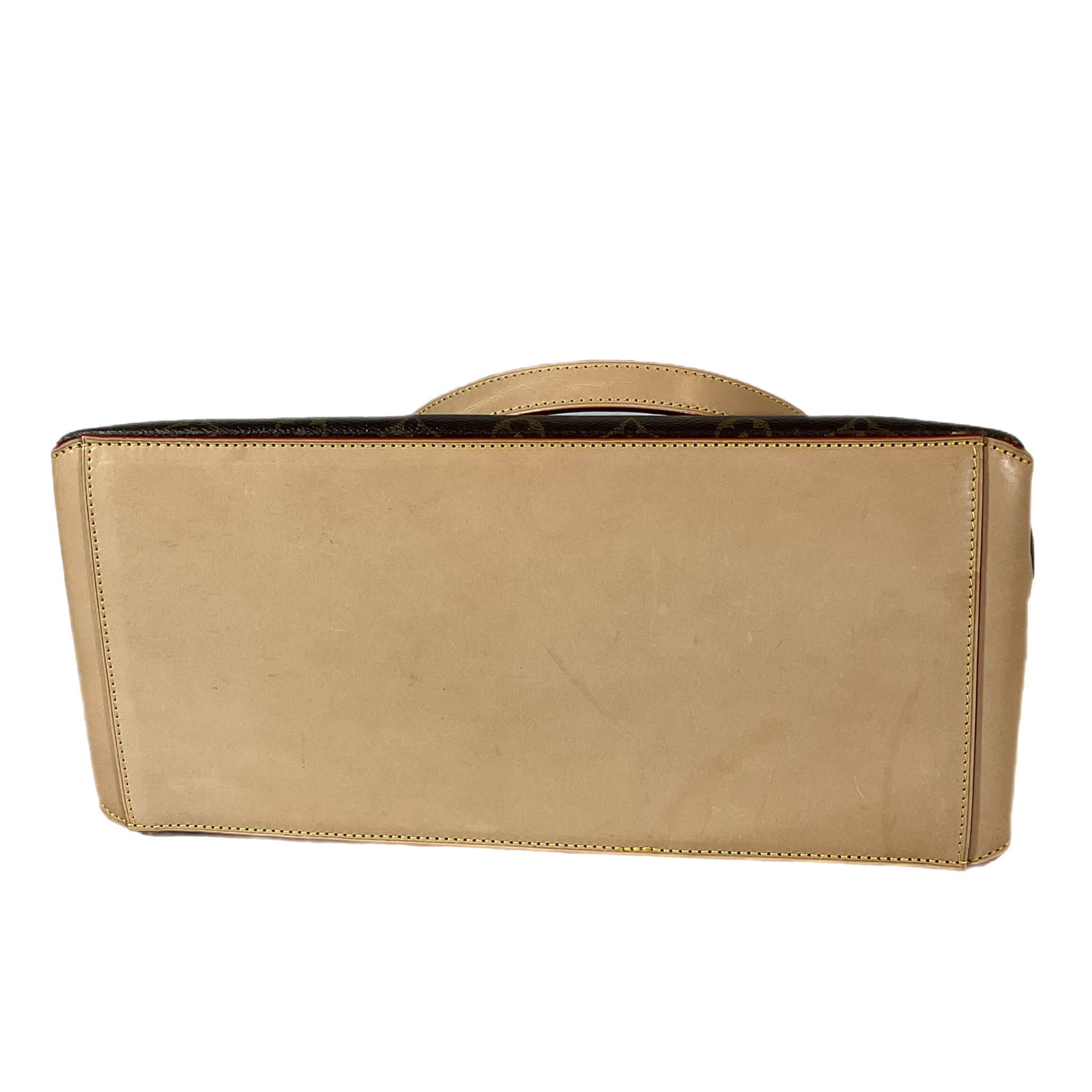 In canvas monogram con parti in vacchetta, la fodera in tela e accessori hardware color oro.