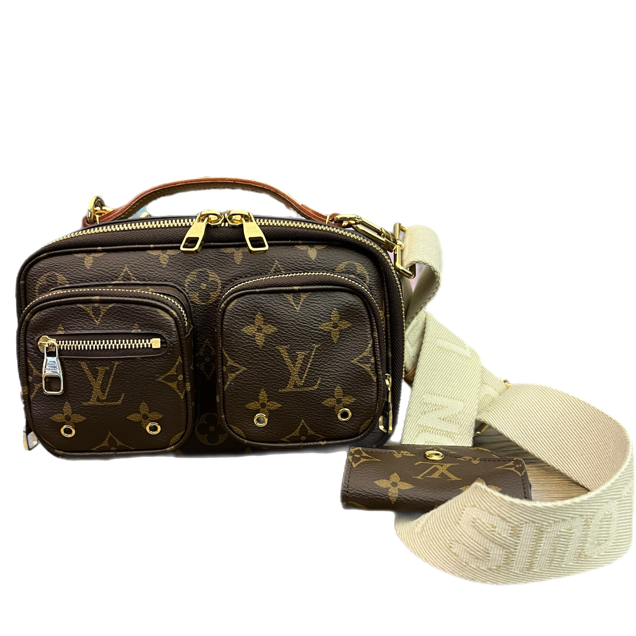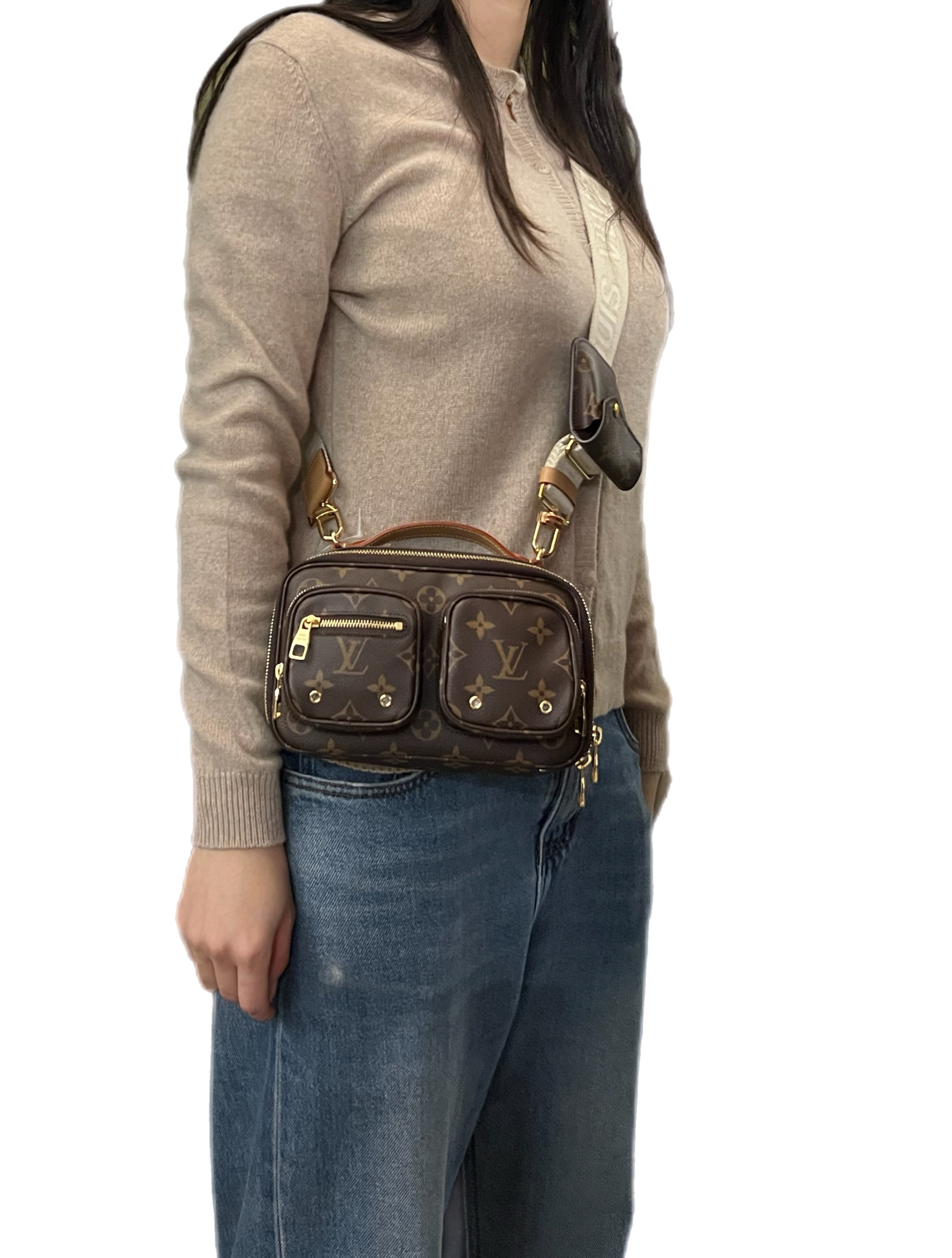 Borsa louis Vuitton crouisè Utility crossbody in tela monogram con finiture in vacchetta naturale e con tracolla regolabile e amovibile color crema,hardware color oro perfetto anno 2021.