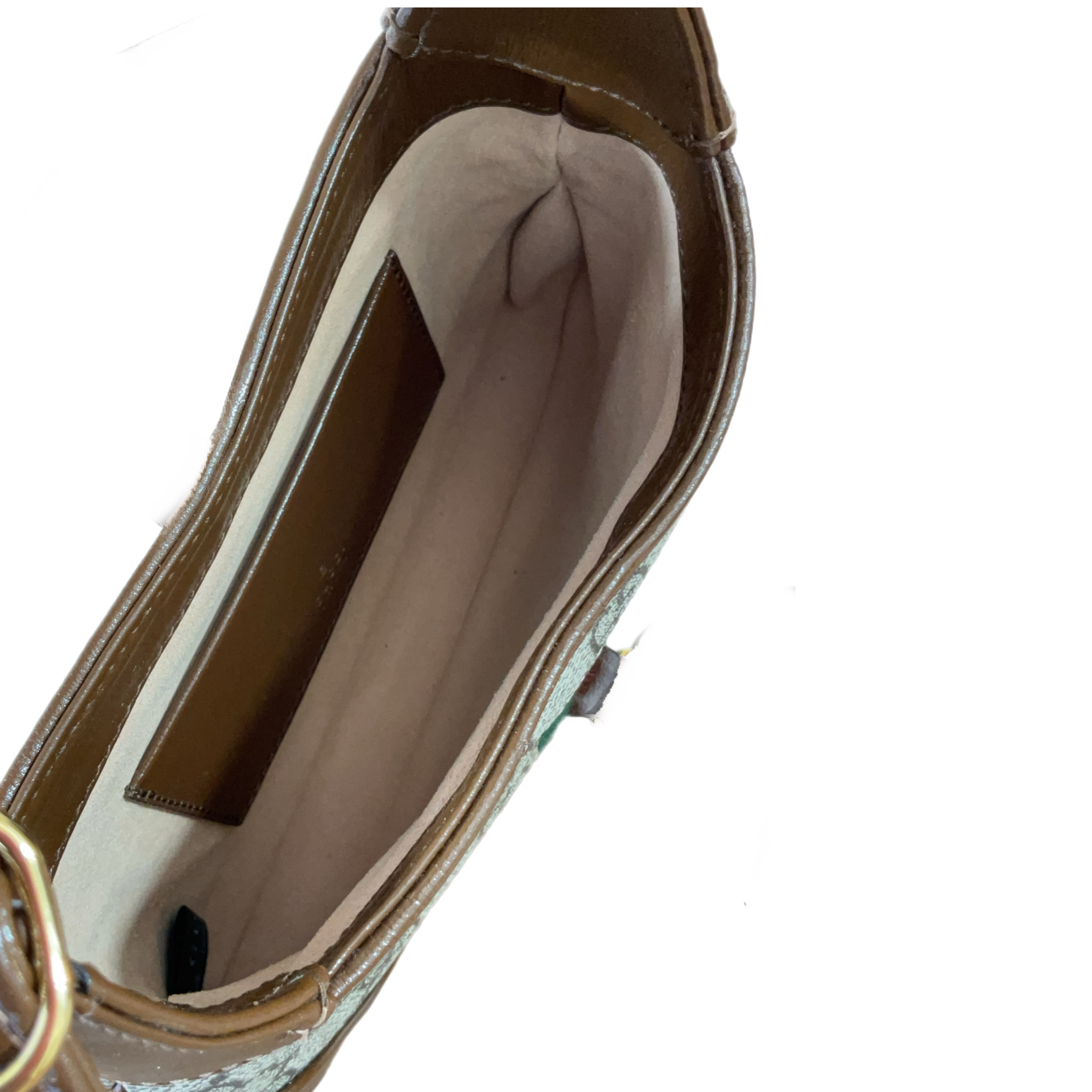 Interno foderato in microfibra effetto scamosciato, le sue condizioni sono buone, tieni conto che essendo una borsa vintage potrebbe mostrare segni del tempo.