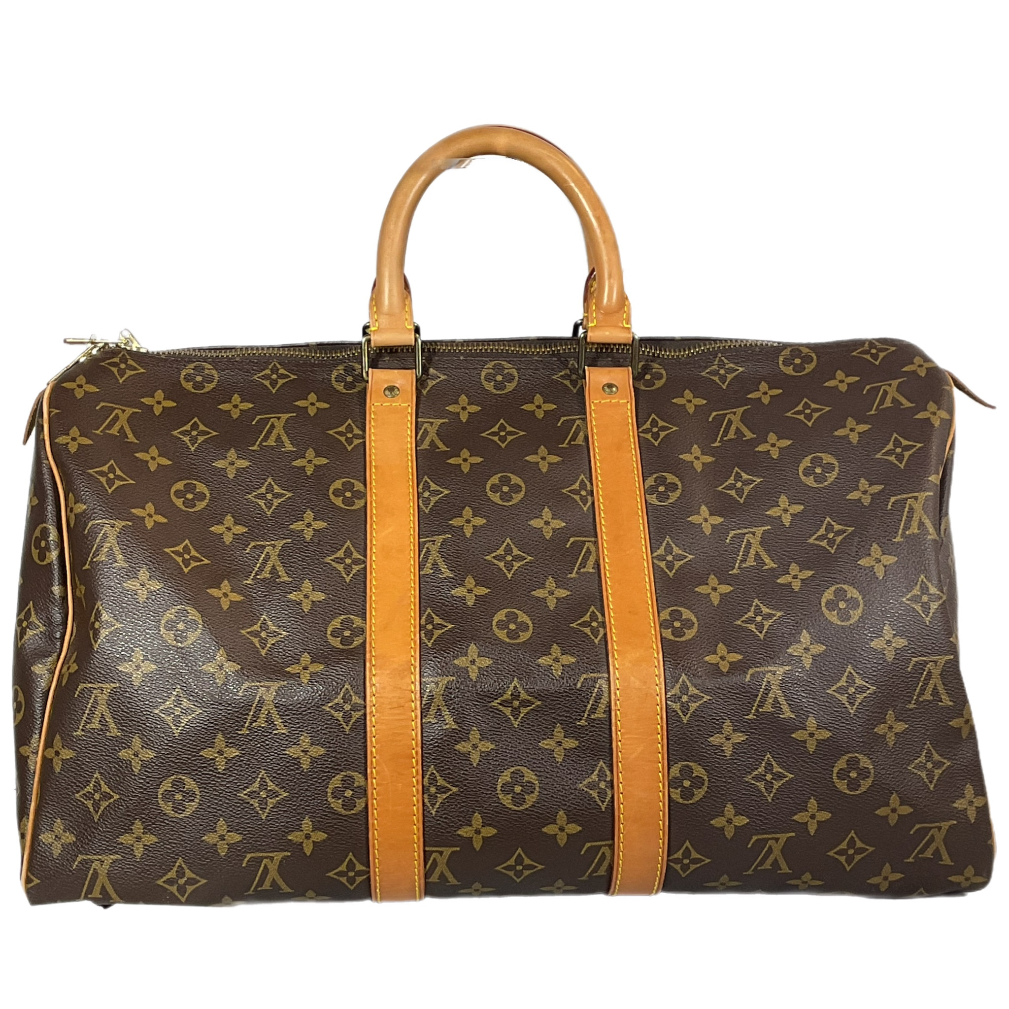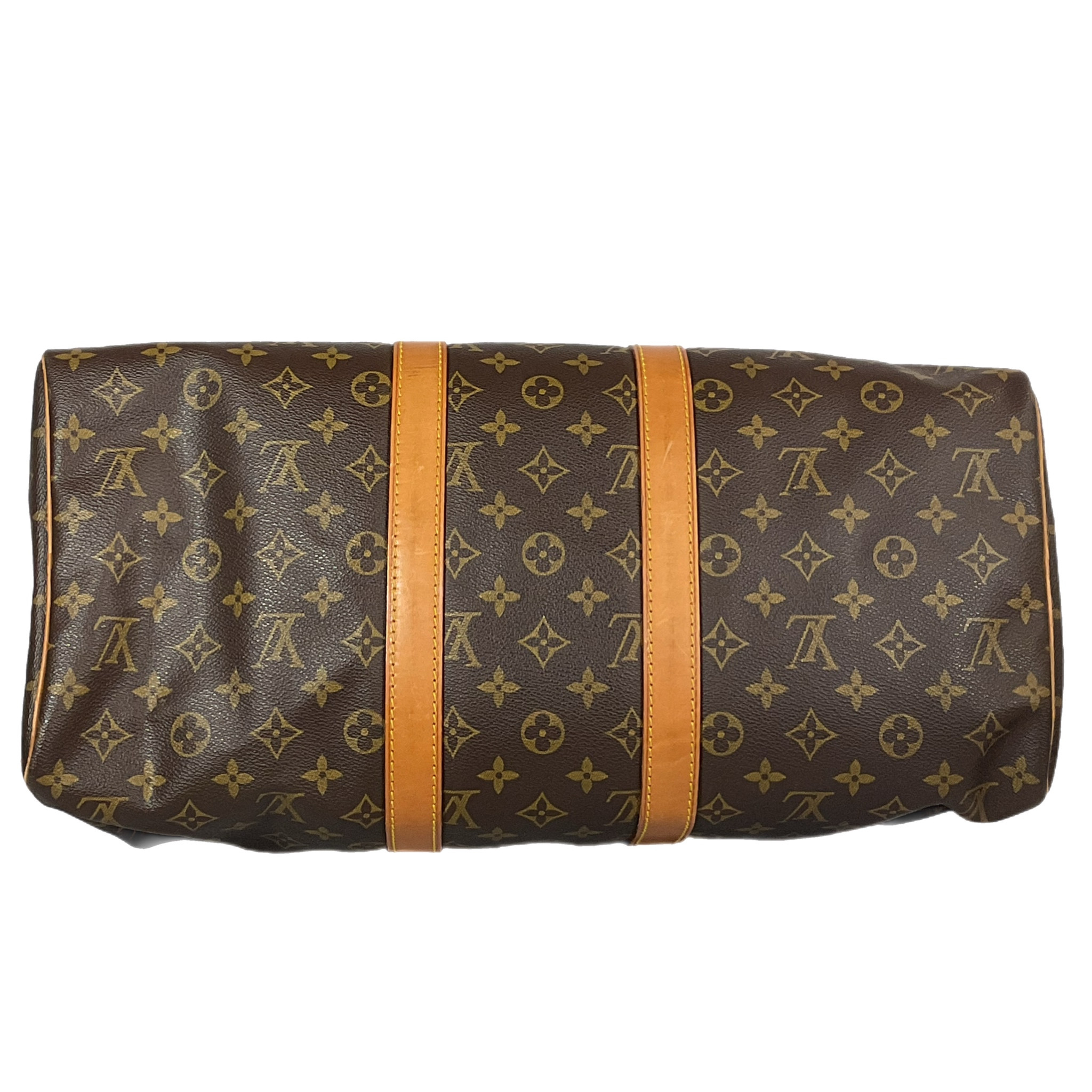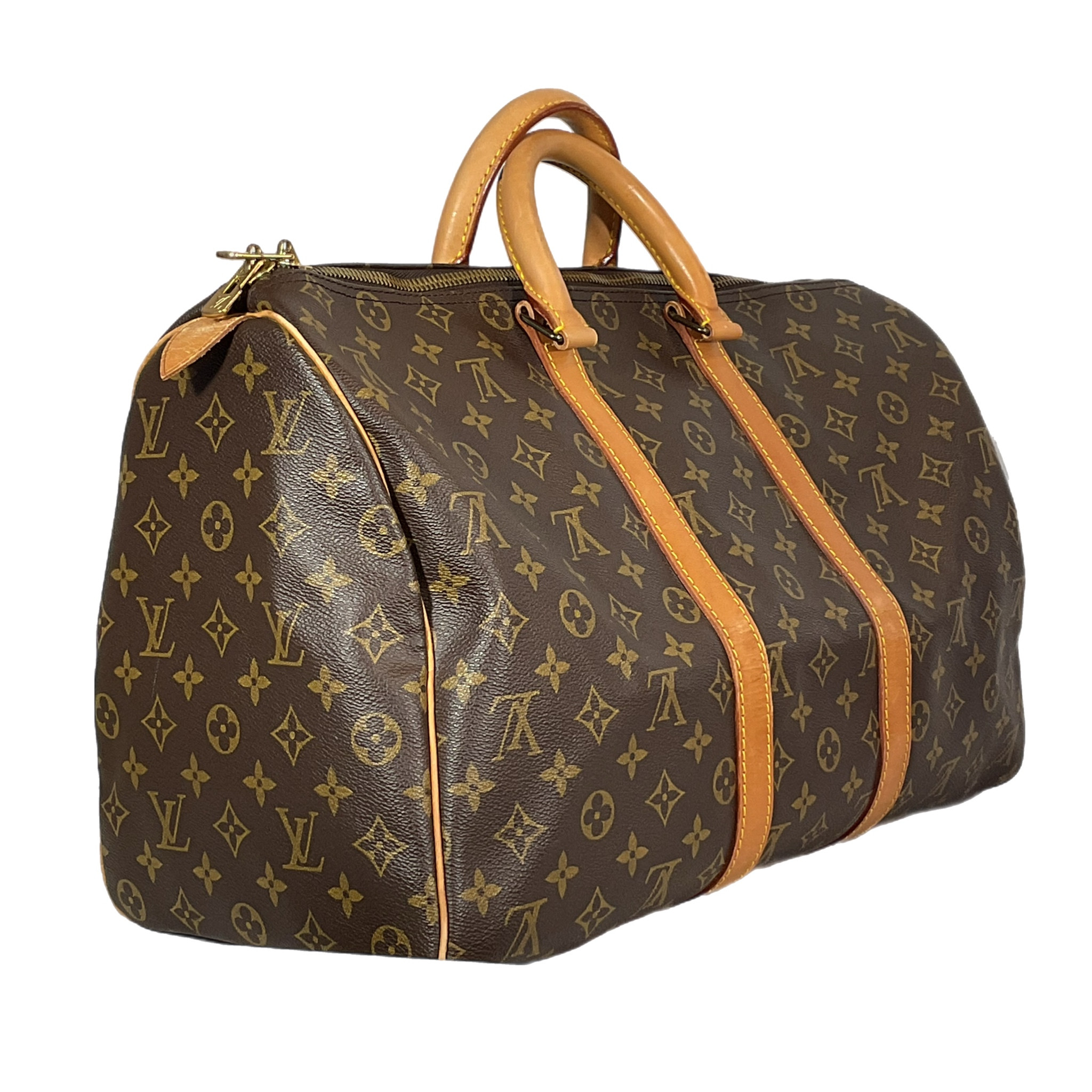Borsa da viaggio Louis Vuitton "Keepall" 45 prodotta ad Aprile 1990 in canvas monogram e parti hardware metalliche oro.