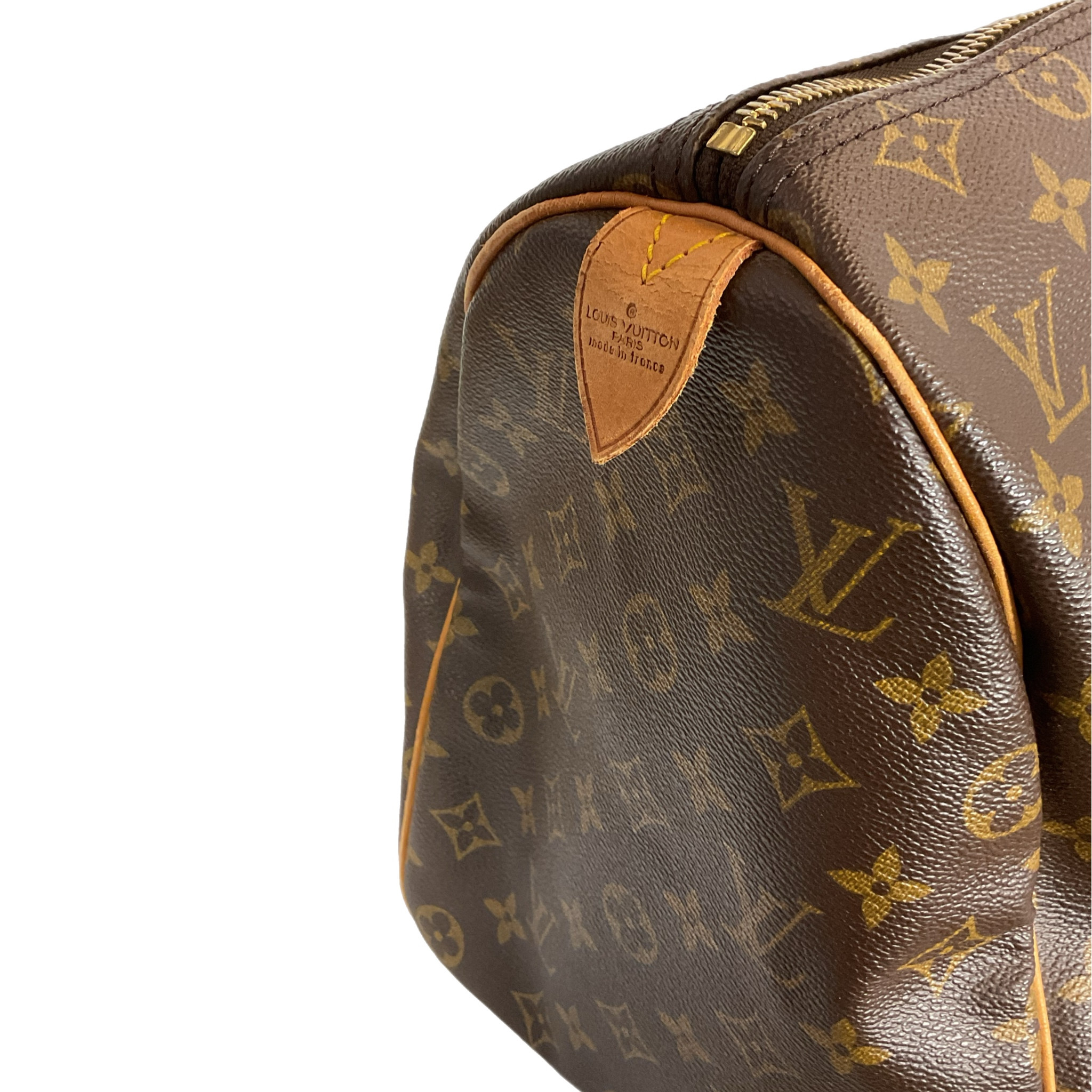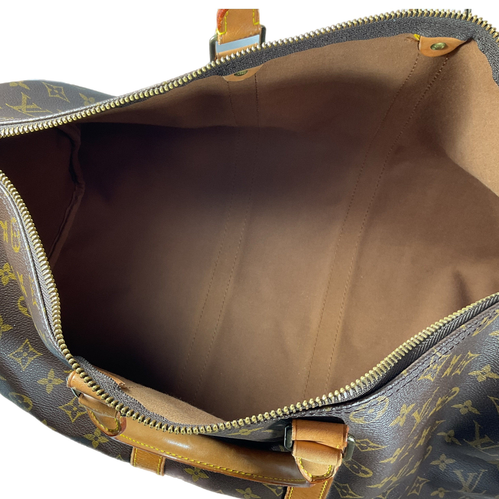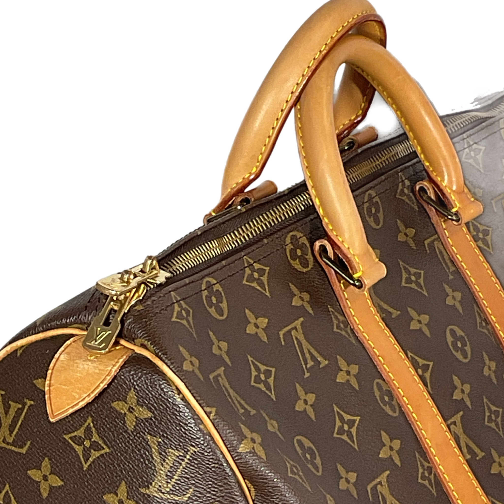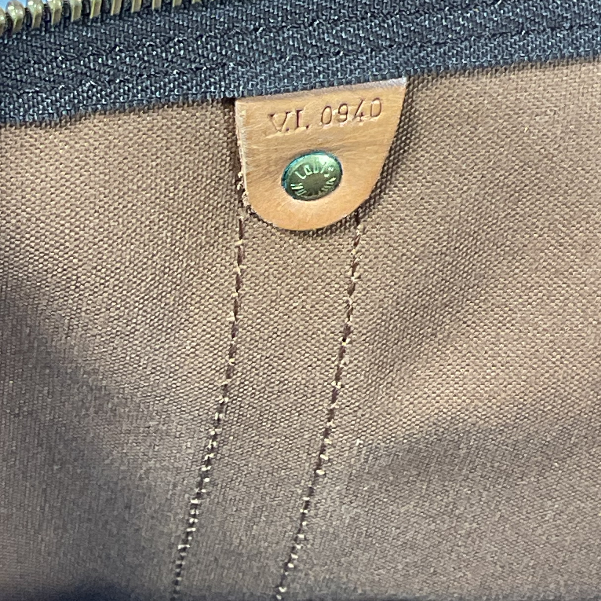 Borsa da viaggio Louis Vuitton "Keepall" 45 prodotta ad Aprile 1990 in canvas monogram e parti hardware metalliche oro.